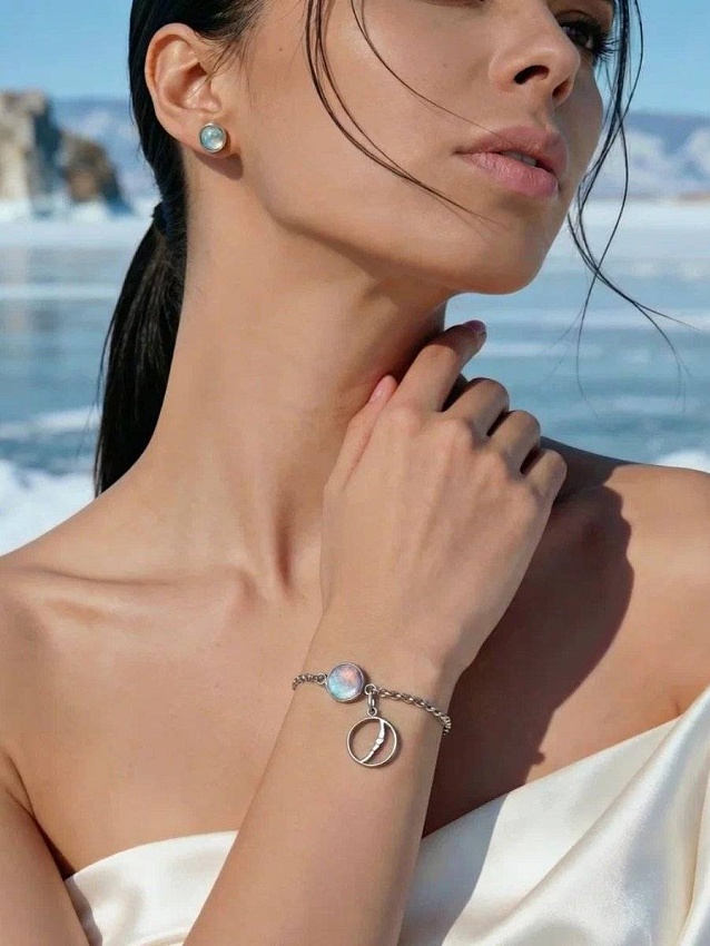 Брезжущий рассвет на Байкале — это мгновение тишины, когда лед еще хранит ночной холод, а свет уже отражается в глубине. Мимолетный момент, который нам удалось поймать! Стеклянная вставка ручной работы передает байкальский лед в первые минуты утра: розово-голубое свечение с мягкими переливами. Серебряный браслет дополнен подвесным элементом с изящным силуэтом Байкала. Украшение про энергию утра, ясную голову и ощущение пространства.