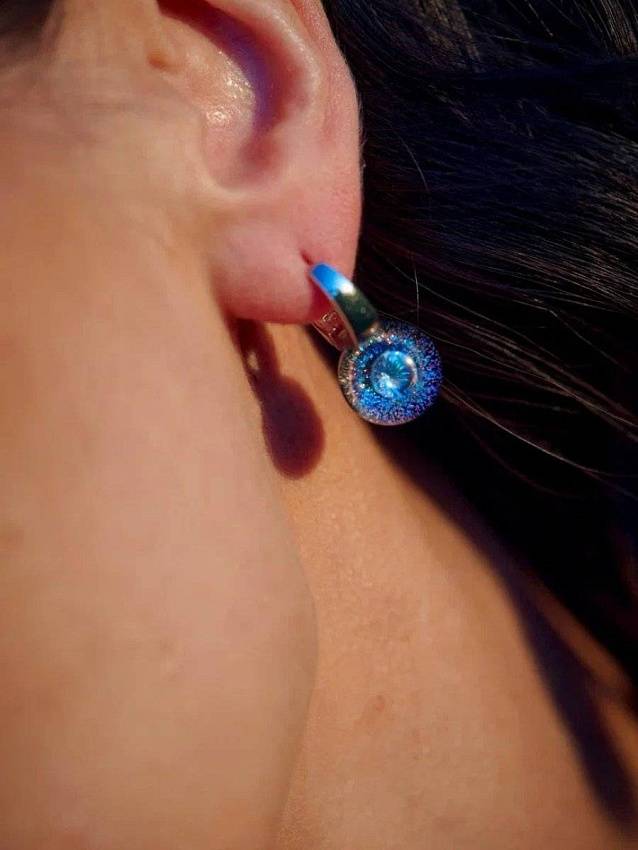 Стекло сережек заполнено на 50%, сверху купол прозрачного стекла, внутри вживлен фианит.
