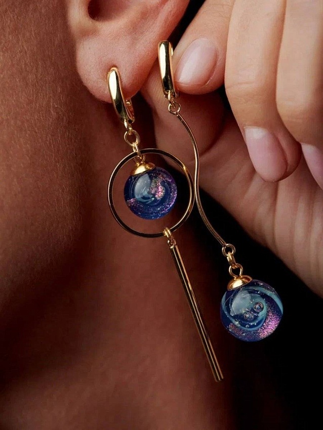 Вау-аксессуар от Olafa: комплекты из трех сережек. Каждый набор включает в себя три серьги с одинаковым стеклом, но разной фурнитурой: два «леденца» и одна «волна». Из комплекта можно собрать асимметричную пару (леденец+волна) или симметричную (леденцы). Лайфхак от стилиста: свободную сережку можно использовать в качестве кулона (подвесив за замочек на свою цепочку). Трио сережек доступно в 5 оттенках.