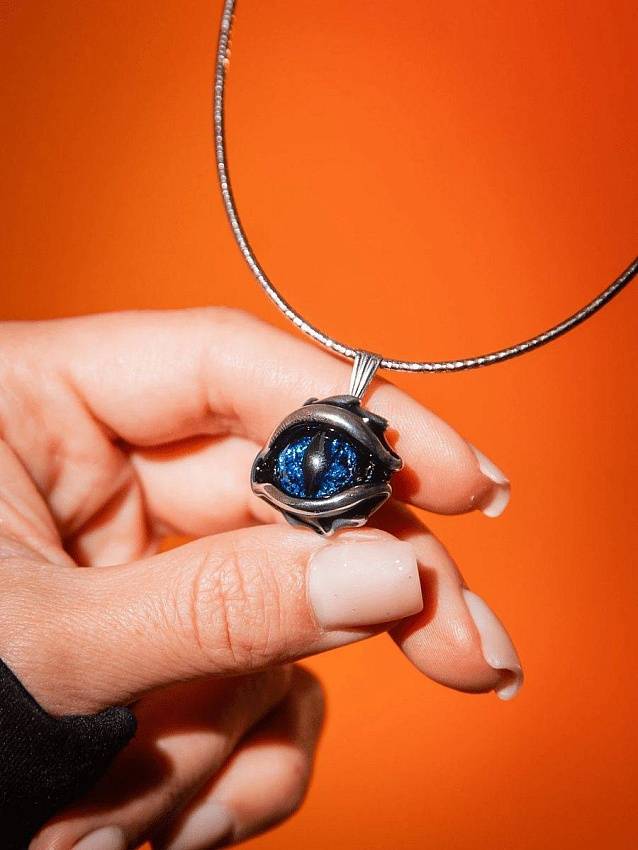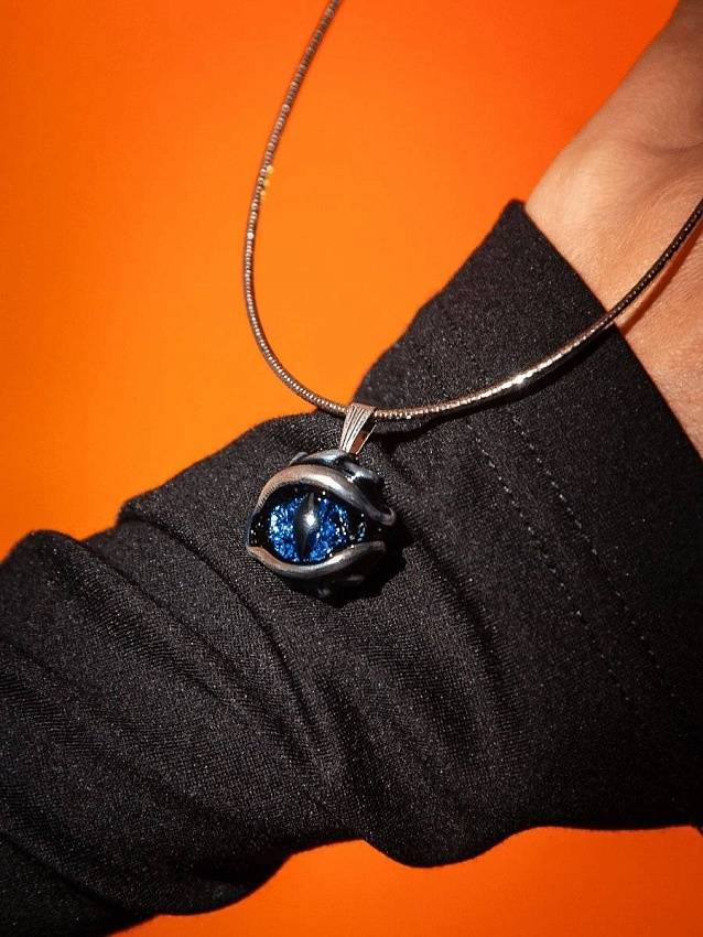 В коллекции представлены моносерьги, крупные асимметричные серьги, плетеные ожерелья и браслеты, подвески в виде ока дракона на металлическом чокере.