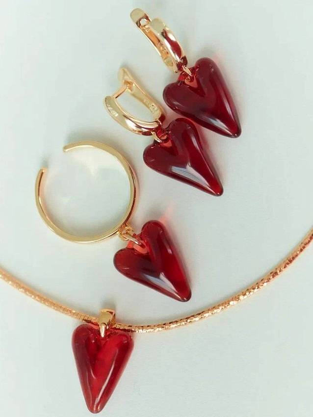 Украшение, от которого сердце забьется чаще! Кроваво-красное стекло и самая трендовая на сегодня форма украшений. Сердечко целиком выплавлено из стекла и дополнено удобной золотистой оправой. Если хотите признаться в любви кому-то или себе — это украшение скажет все за вас.
