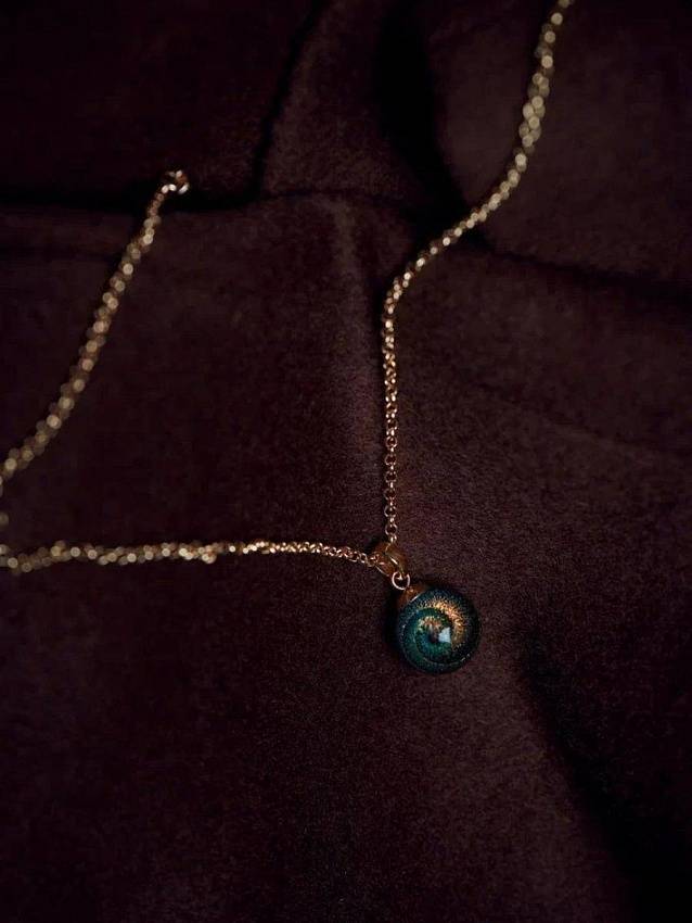 Изумрудно-золотистые завихрения звезд, подчеркнутые золотистой фурнитурой.