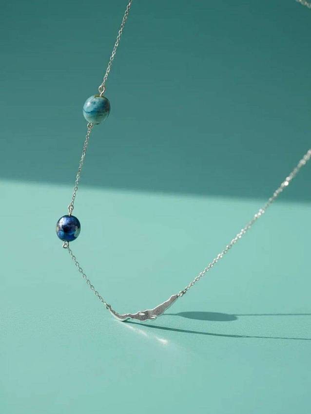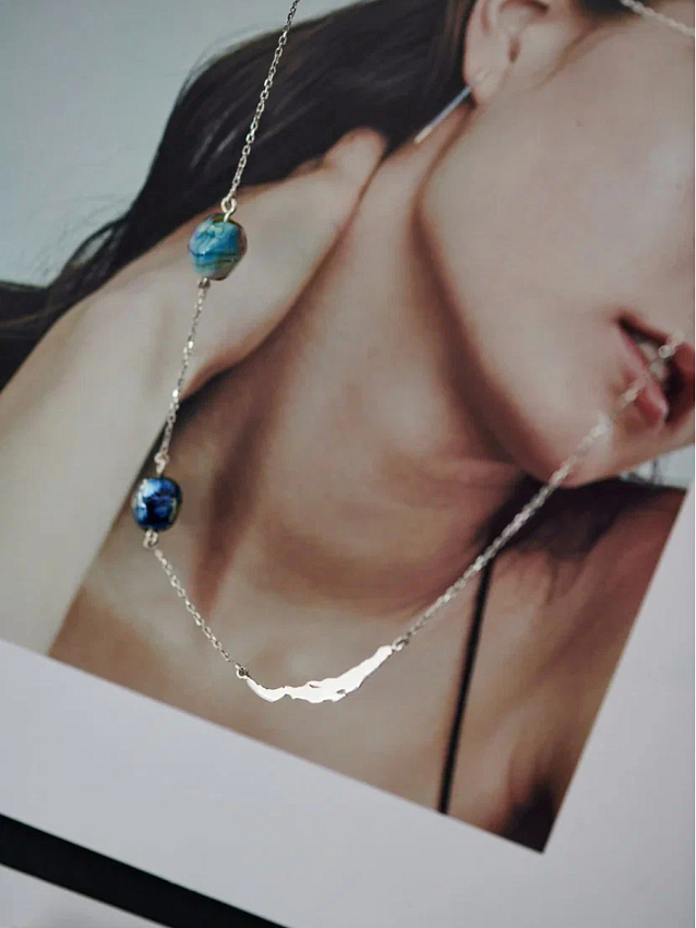 Первое украшение Olafa с серебряным силуэтом Байкала. В этом изящном колье мы обыграли известную легенду об озере. Серебряная вставка — это седовласый батюшка Байкал, а две капельки стекла — это убегающая красавица Ангара и ее возлюбленный Енисей. Украшение, в котором спрятана красивая история любви.