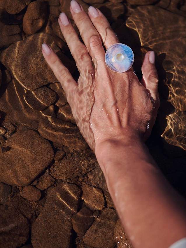 Летающие тарелки замечены над Байкалом — или это посылки с новыми украшениями Olafa полетели к своим обладательницам? Мы выпустили лимитированную серию колец-дисков, в каждом из которых заключена работа 5 разных мастеров. Керамическая основа кольца, чашечка из металла, стеклянный диск, акцентная стеклянная капля, финальная сборка — все это выполнено вручную нашими специалистами. Кольца выпускаются в разных оттенках: от молочного до грозового синего.
