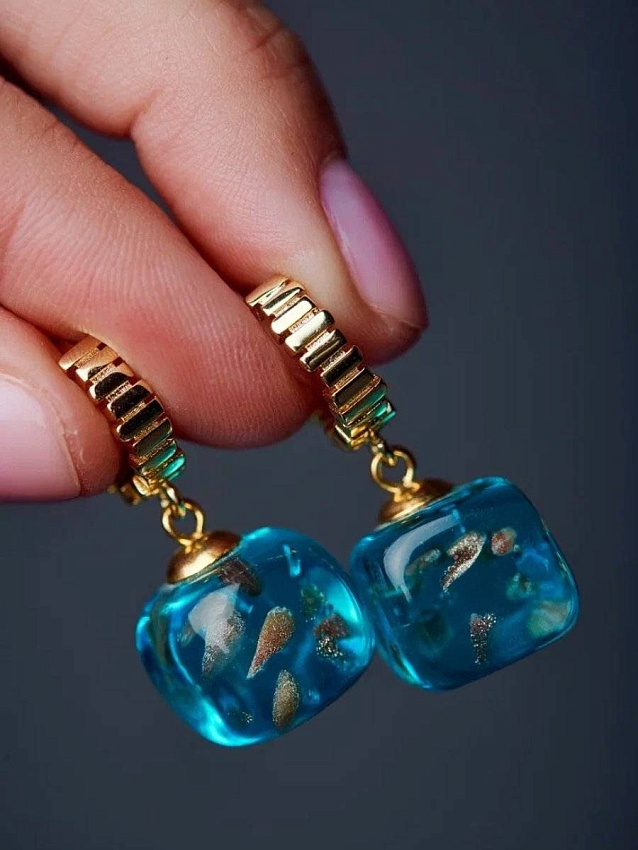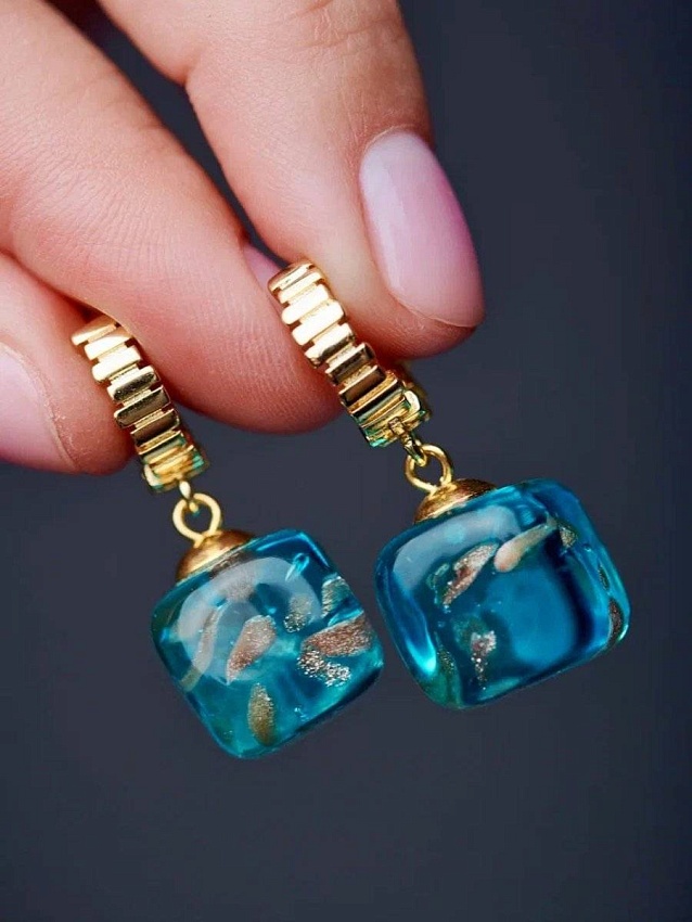 Стеклянные кубики напитаны дыханием ветра и покрыты изнутри золотыми поцелуями осени. В этих серёжках тебе будет уютно и хорошо, обещаем.