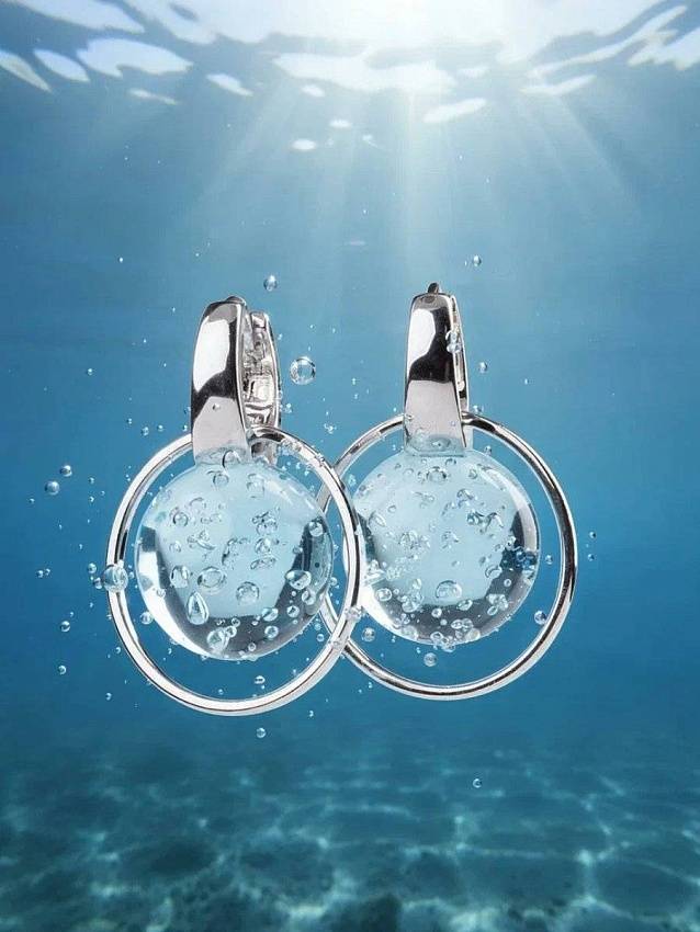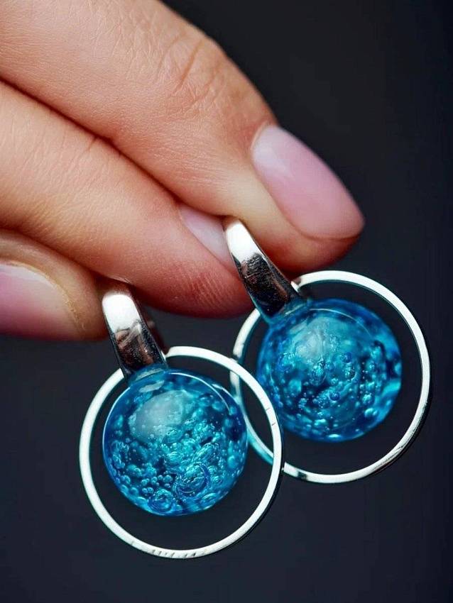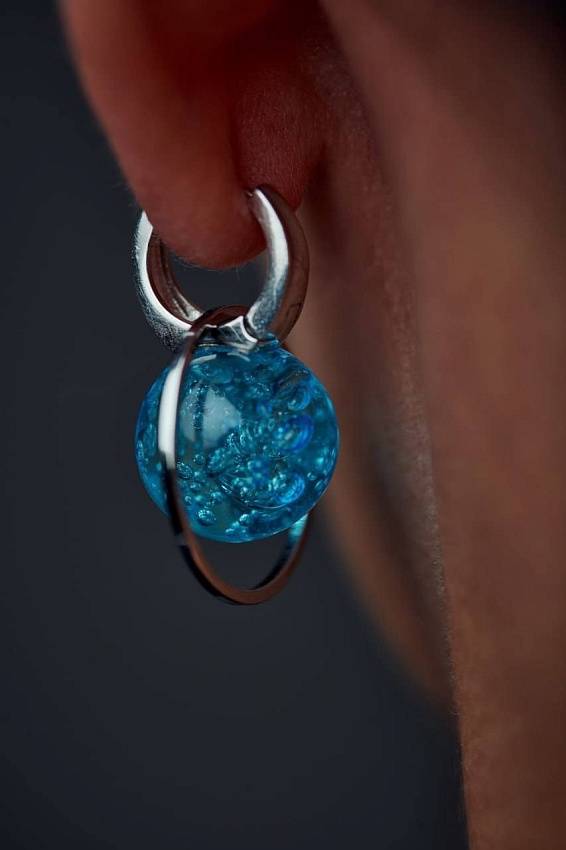 Увидев Байкал зимой, вы можете решить, что вода в нем газированная, — ведь вся толща озера насквозь прошита пузырьками! Про это знаменитое байкальское чудо мы решили рассказать в своих украшениях. Под голубым стеклом, словно подо льдом, застыли воздушные капли. Разница только в одном: наше стекло весной не растает.