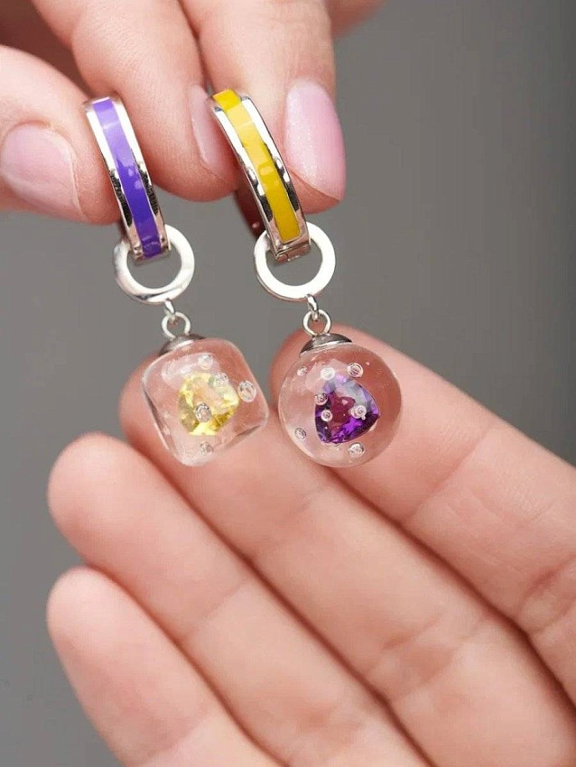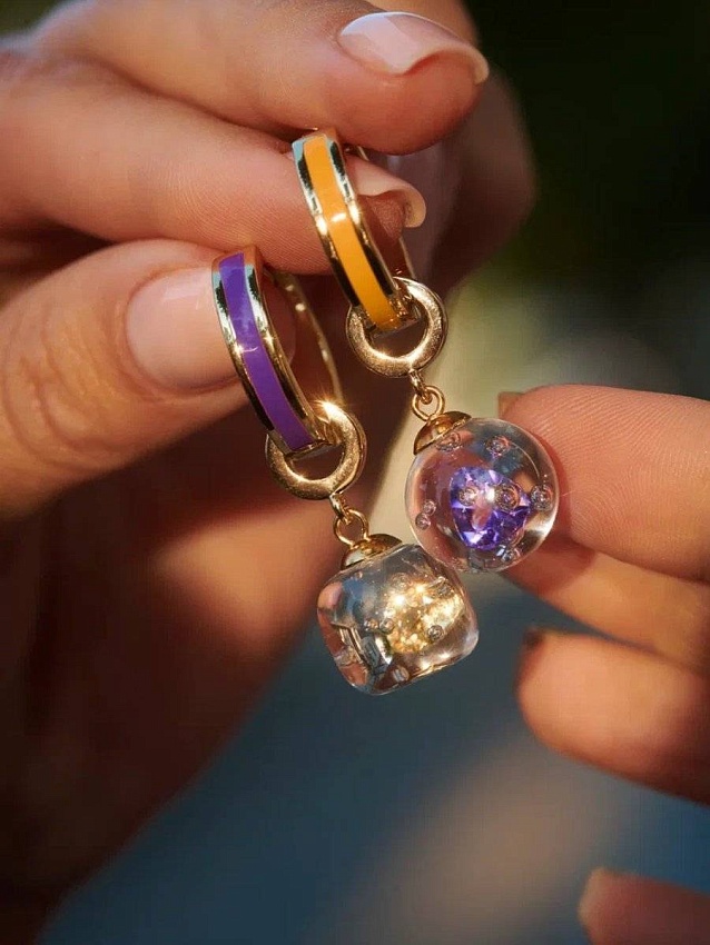 И контрольный выстрел: все серьги — трансформеры. Подвесные элементы снимаются, оставляя маленькие яркие колечки.