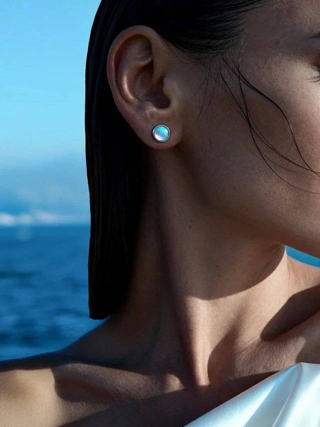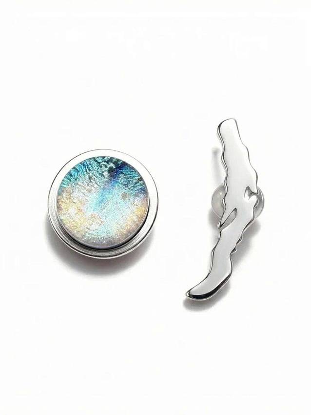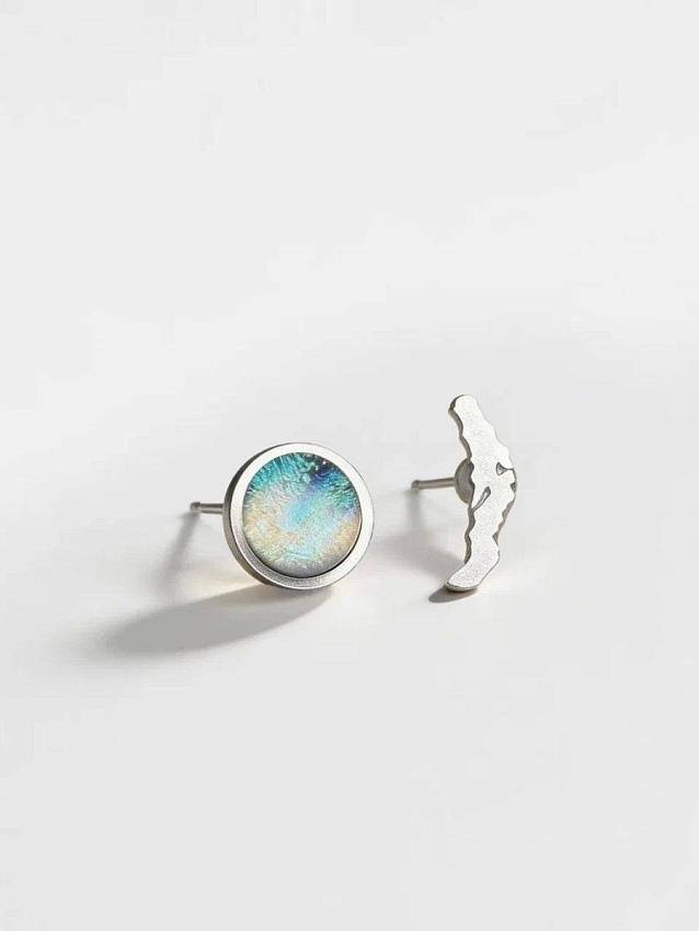 Озеро Байкал — самое глубокое на планете, в максимальной точке его глубина достигает 1642 метра. Когда в эту толщу чистой и прозрачной воды проникают лучи солнца, внутри начинается настоящий карнавал бликов — как в этом стекле. Многомерную бусину уравновешивает асимметричный серебряный гвоздик в виде силуэта Байкала. Лёгкие и спокойные серьги, которые подходят для повседневной носки и легко сочетаются с другими украшениями из коллекции.
