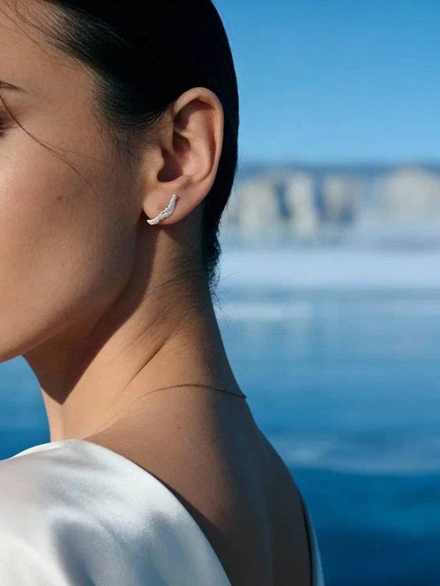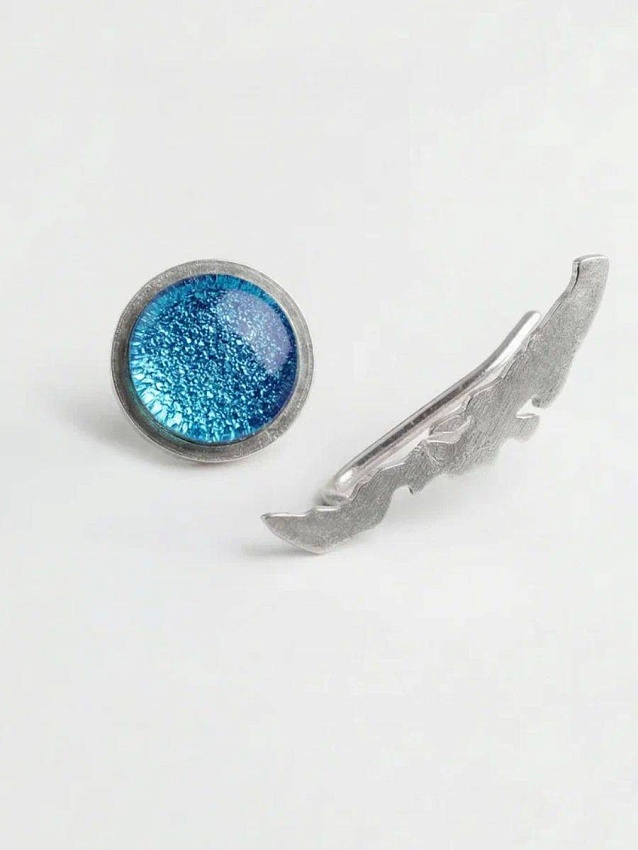 Удивительная асимметричная пара: серебряный кафф в виде силуэта Байкала и акцентный гвоздик цвета океана. Первая серьга аккуратно продевается в мочку и красивой линией протягивает вдоль ушка. Вторая серьга — стеклянная капелька с насыщенным синим стеклом. Его цвет отсылает к водам Байкала в ясный день, когда глубина кажется особенно плотной и прозрачной. «Линия Байкала» — серьги для тех, кто любит нестандартные детали без излишней декоративности. Подходят для повседневных образов и легко сочетаются с другими украшениями коллекции.