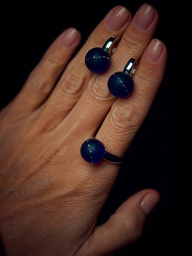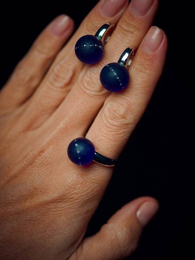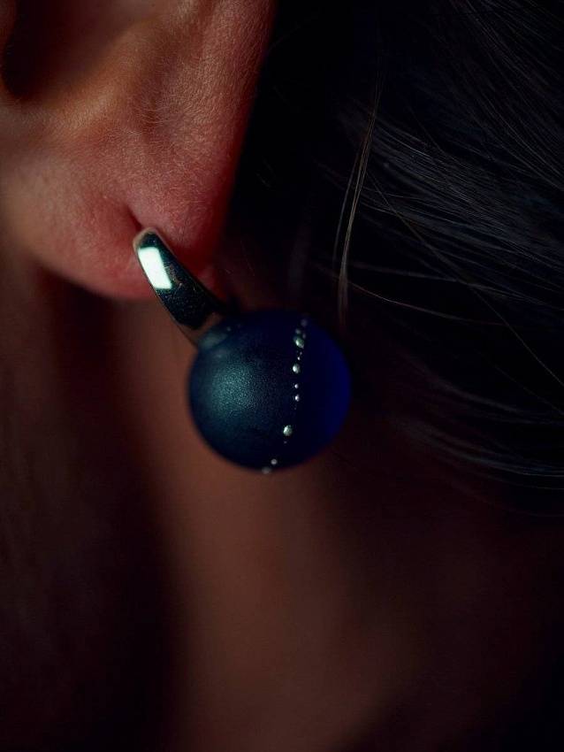 Мы переложили этот сложный процесс на язык украшений. В этой коллекции есть яркие украшения — как будто вспышка света в глубине воды, а есть спокойные, плотные, с тонкой линией серебра внутри — как след нейтрино.