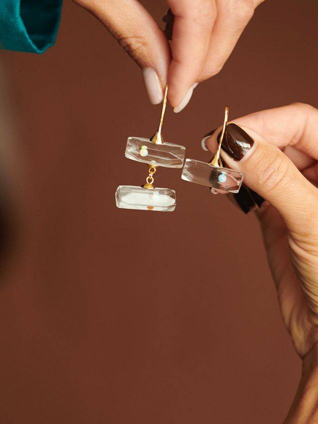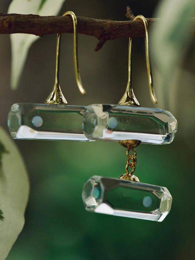 Три отличительные особенности новой коллекции: прозрачное стекло, опалы и грани.