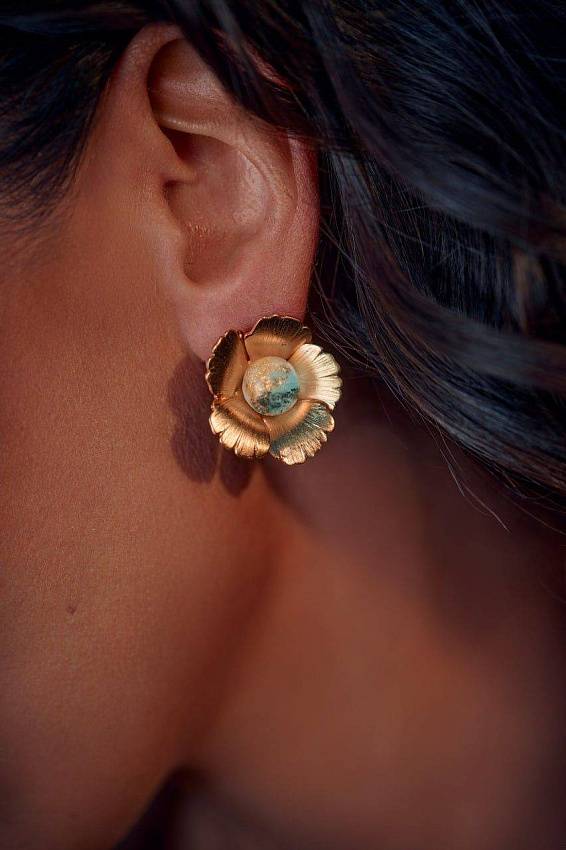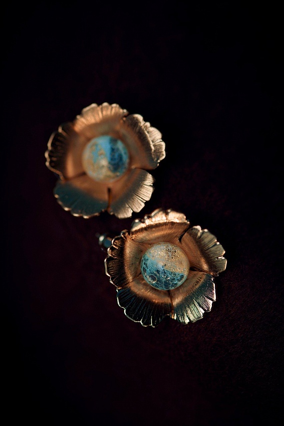Перед вами коллаборация двух ярких брендов с научным почерком: стеклянные сердцевинки — от Olafa, химиков и резидентов инновационного центра Сколково, а гальванические лепестки — от «Вируса», созданного бывшим ученым-вирусологом. Основатели брендов перенесли свою любовь к алхимическим процессам, микромиру и исследовательскую точность в мир ювелирного дизайна. Так появились эти завораживающие цветы с распахнутыми лепестками и изумительными стеклянными бусинами внутри.