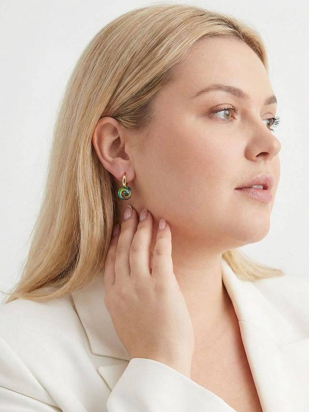 Это не сережки — это бразильский карнавал! Хитовые серьги-колечки Olafa в новом прочтении: специальная палитра для блондинок, а также зеленоглазых и кареглазых красоток. Изумрудно-золотистые завихрения звезд, подчеркнутые золотистой фурнитурой. Модель, непревзойденная в удобстве: в этом украшении можно танцевать всю ночь напролет!