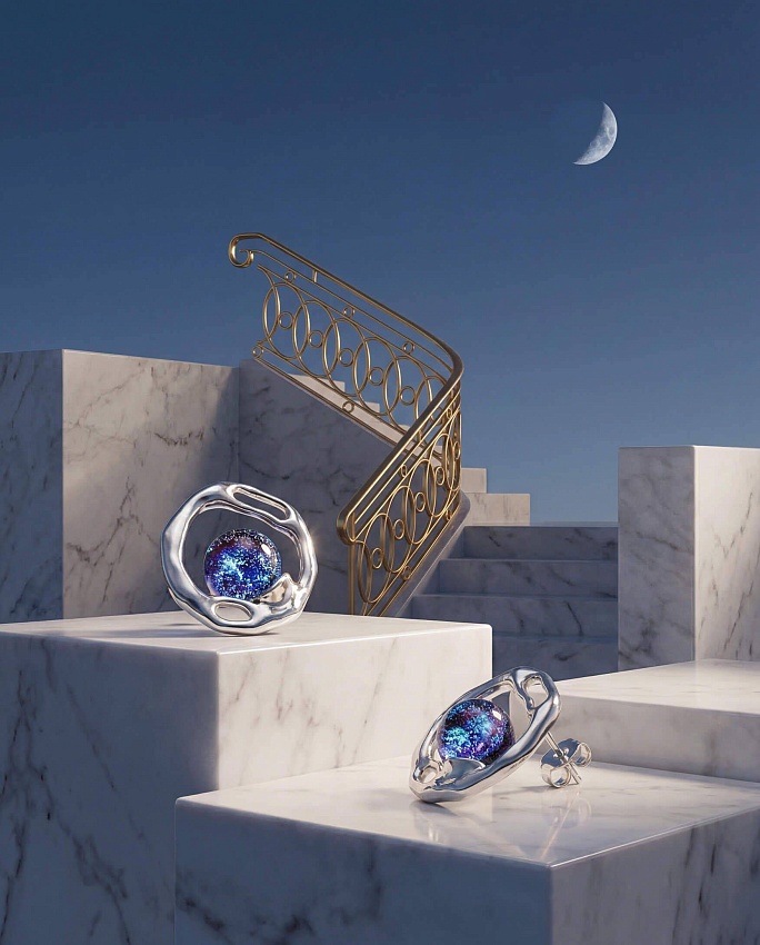 Когда на небе восходит Луна и озаряет водную гладь своим холодным серебристым светом, рождается одно из самых завораживающих явлений — лунная дорожка. Этим природным чудом вдохновлялись Айвазовский, Куинджи — и мастера Olafa. Диск Луны для этого украшения мы выполнили из сияющего стекла, а узкую полоску света — из нейзильбера (ювелирного сплава).
