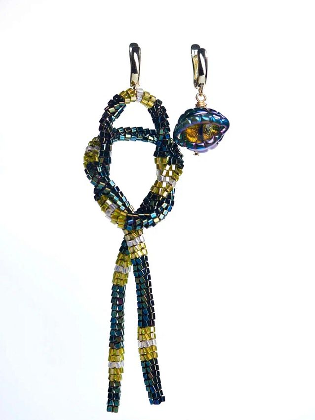 Каждый миллиметр этих украшений выполнен вручную нашими мастерами: хвост аспида сплетен из японского граненого бисера, змеиный глаз выплавлен из стекла при температуре 1500 градусов, а чешуя «нарисована» тончайшим шилом по горячему стеклу.