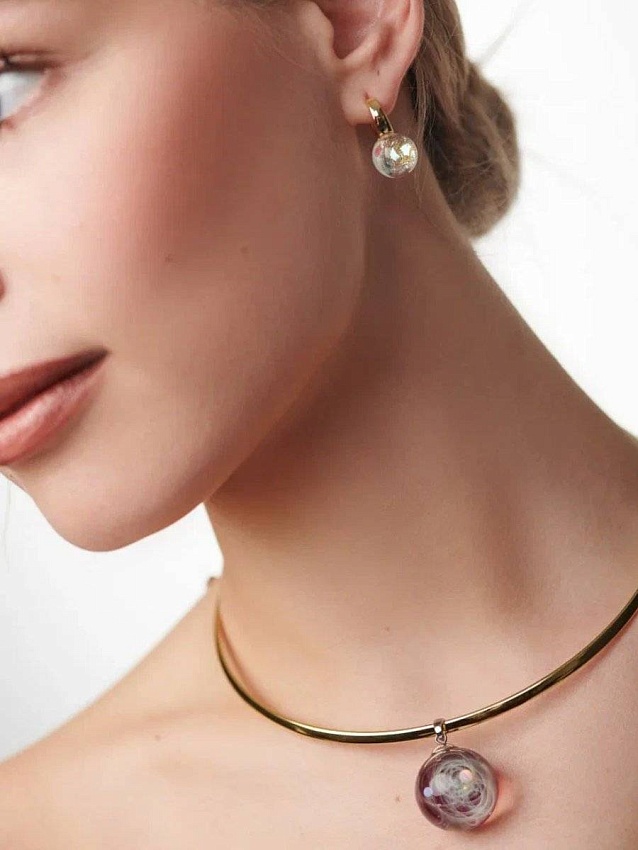 Каждое движение сережек оживляет внутри миллионы маленьких светлячков! Стекло создано в технике «сэндвич» — это значит, что искорки будет видно со всех ракурсов.